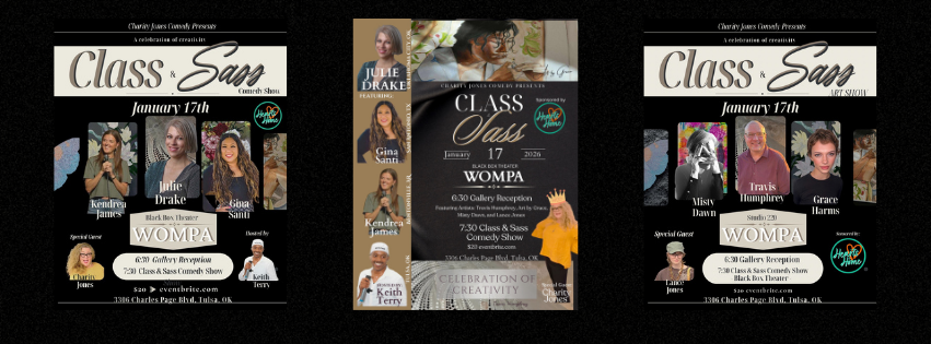 The evening will feature a range of talented artists and comedians. Artists will display and sell original works on canvas. Together pieces bring color, depth, and creativity to the evening. Our comedy lineup includes diverse backgrounds, perspectives, and comedic styles – bringing a wealth of experience and energy to the stage. Featuring regional comedians from Oklahoma, Arkansas, and Texas.